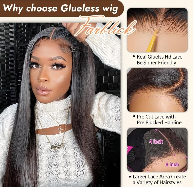 20″ Wear & Go Glueless Straight Lace Front Wig – 6×4 HD Lace Human Hair Wig, Pre-Plucked & Pre-Cut, 180% Density, Natural Black